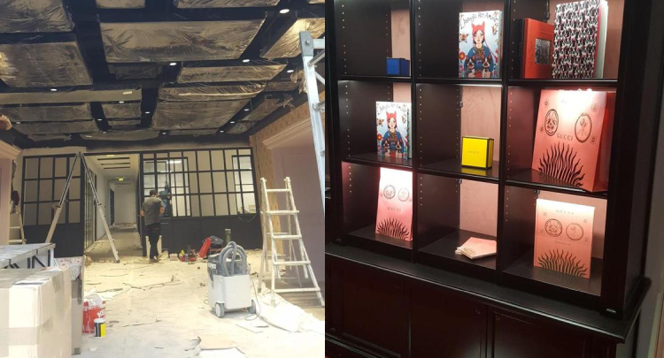 Le réaménagement de la boutique Gucci à Florence, en Italie, a été une célébration de l'élégance italienne et du style emblématique de la marque. Située au cœur de cette ville historique, la boutique a été transformée en un espace somptueux qui marie habilement l'héritage de Florence avec la modernité de Gucci. Les fresques murales ornées et les détails architecturaux florentins ont été préservés, créant une atmosphère authentique et prestigieuse. Des présentoirs en marbre et des éclairages sur mesure mettent en valeur les produits de la marque de manière spectaculaire. Le résultat est un écrin luxueux où la mode de Gucci se fond harmonieusement dans le riche patrimoine culturel de Florence.